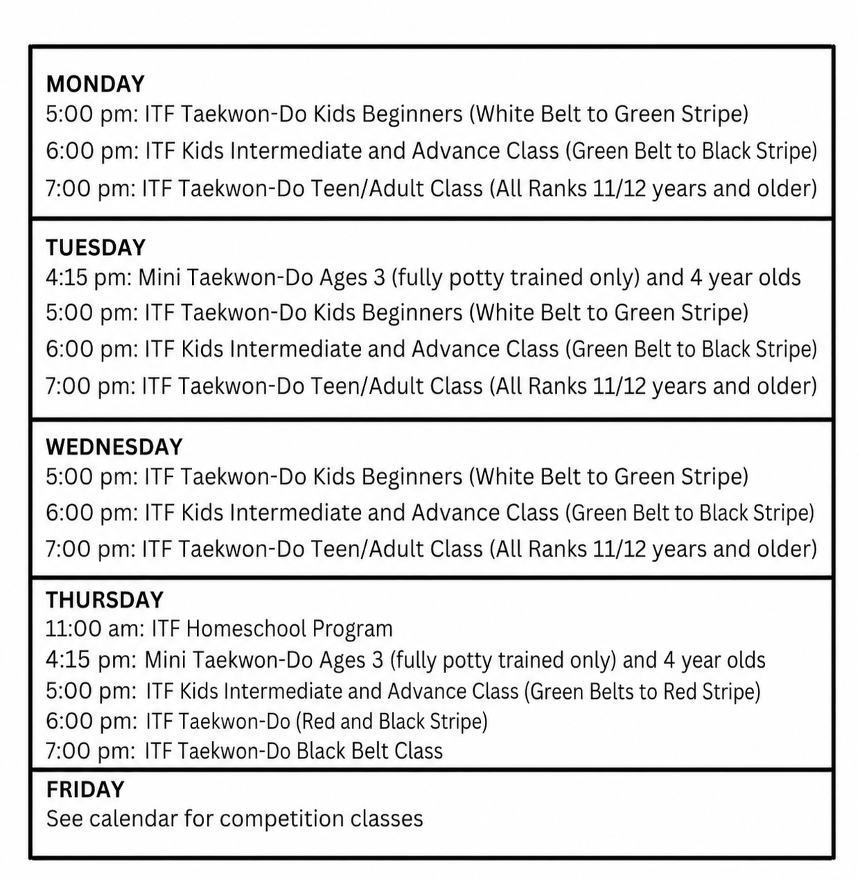 ITF Taekwon-Do Kids: Classes designed for 5-10 years old.